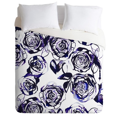 Twin Twin Xl Holly Sharpe Inky Roses Duvet Cover Set Purple Deny Designs Target